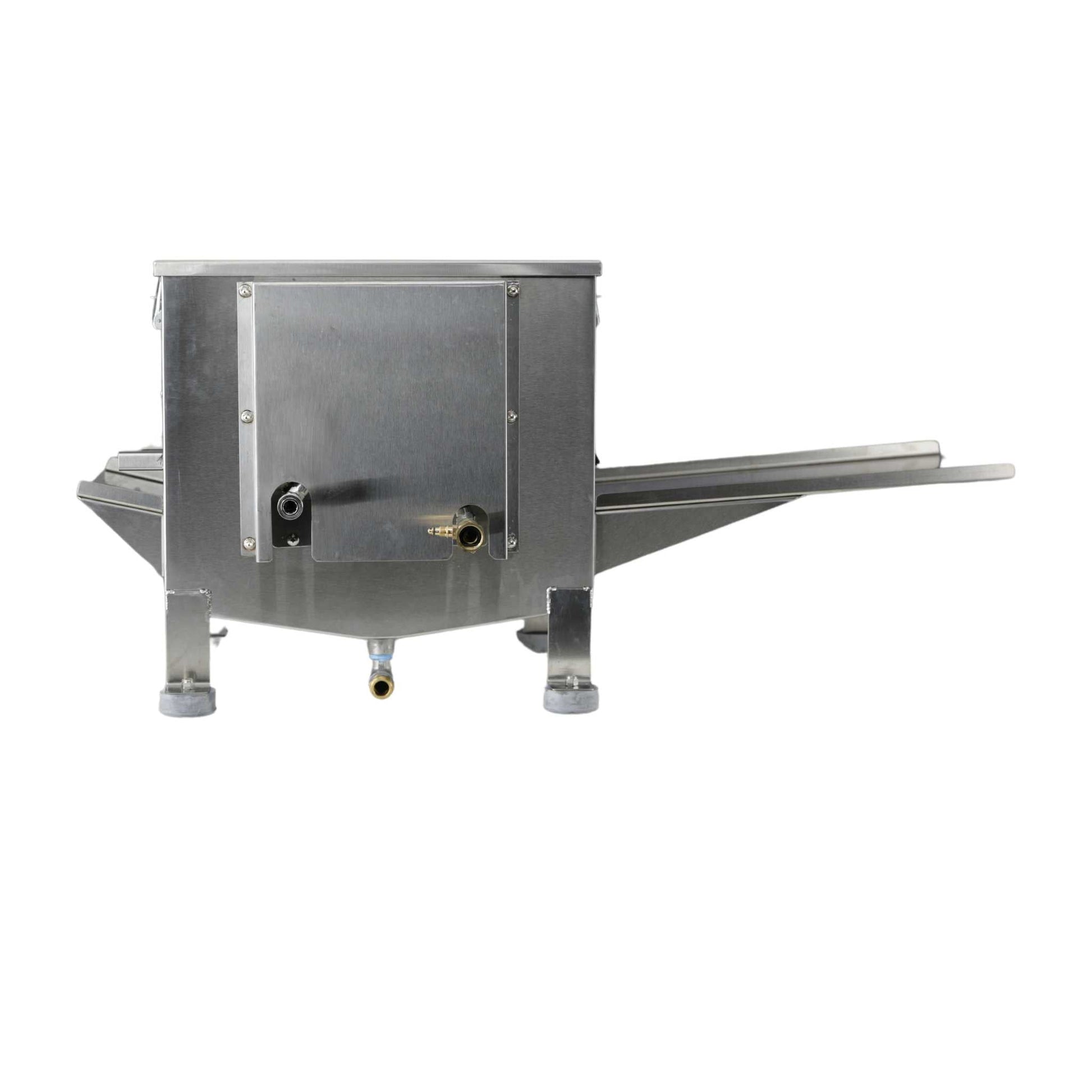 The unit is fabricated in Texas out of stainless steel and is powered by a pressure washer (purchased separately).