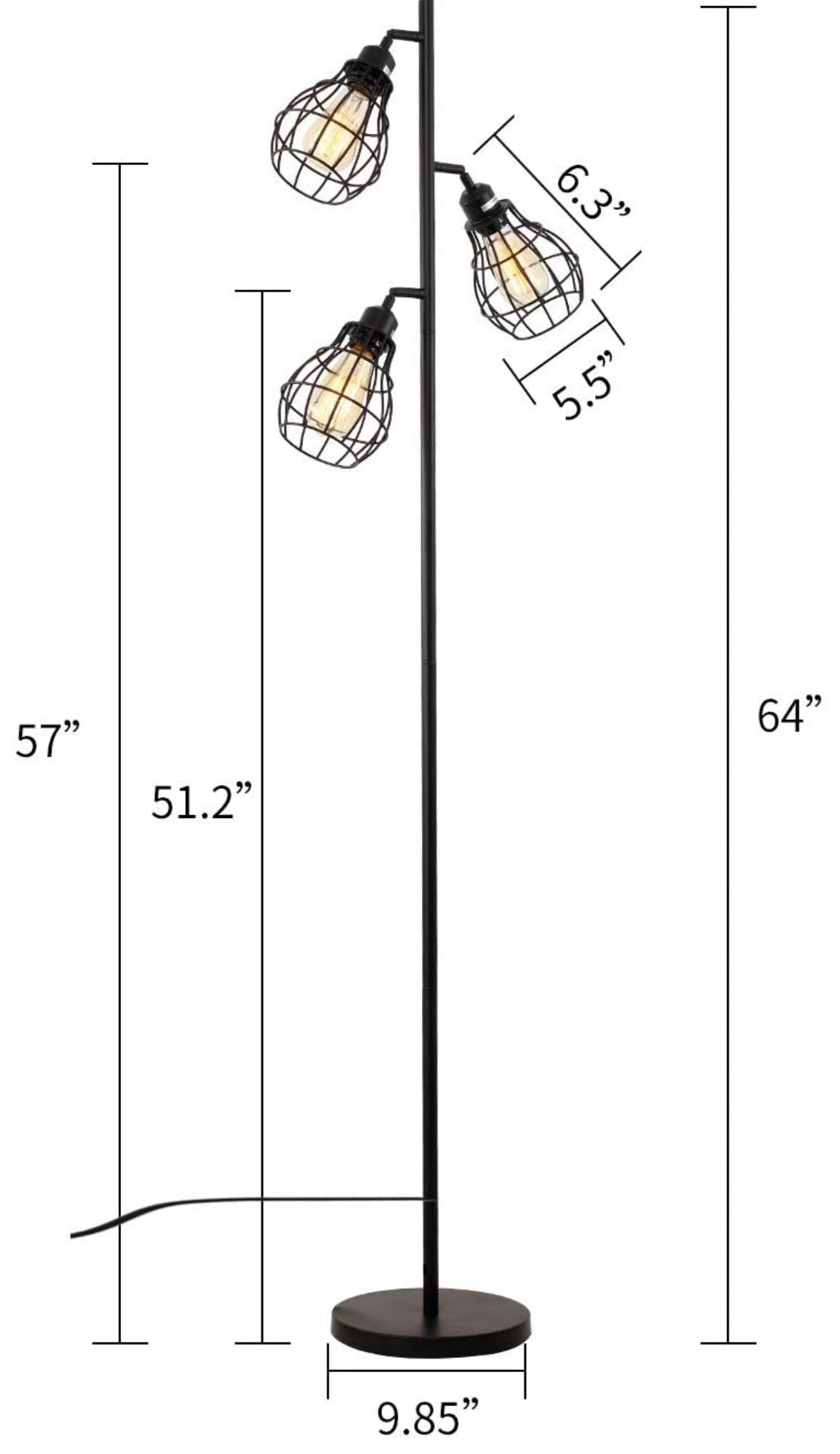 Floor Lamp Matches Industrial, Farmhouse & Rustic Living Rooms – Standing Tree Lamp with 3 Elegant Cage Heads & Edison LED Bulbs