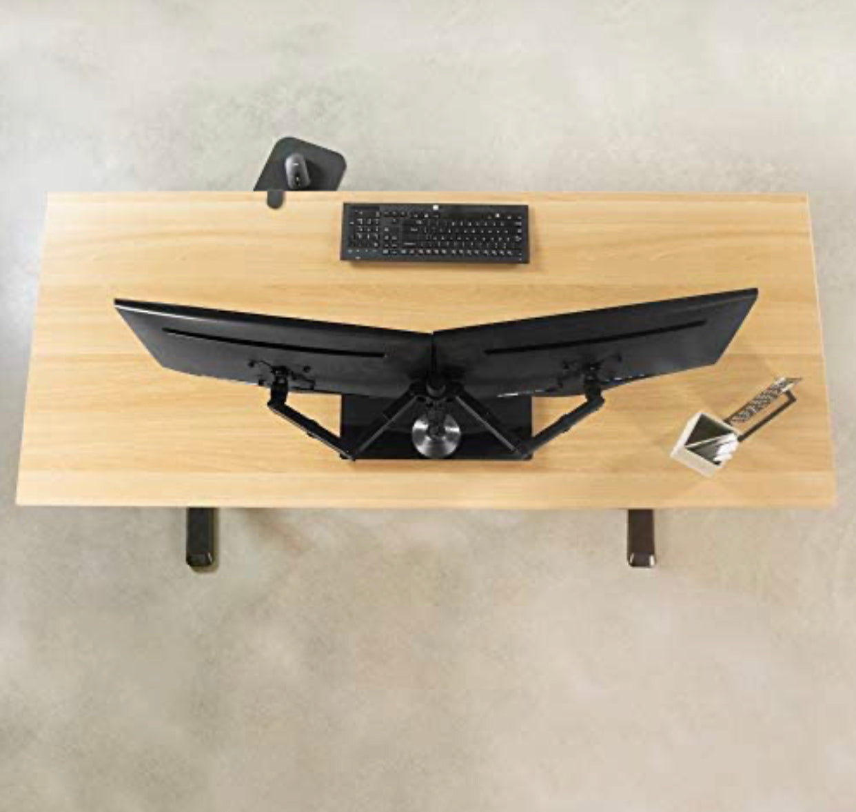 Enjoy the benefits of increased efficiency with dual monitor desk stand ! Enhance your work day with this high-grade steel stand built for scratch resistance and security. Designed with user-geared features such as arm articulation, removable VESA mounting plates, adjustable monitor height, integrated cable management, and more, this mount is customizable to your particular office needs. The versatility of screen placement allows for ergonomic viewing aiding in decreased fatigue and muscle strain on the neck, back, and shoulders. The sturdy tempered glass base adds a classy look to your office while providing ample support for the monitors. All hardware and instructions are provided, so you can get your new monitor display ready to go in no time!