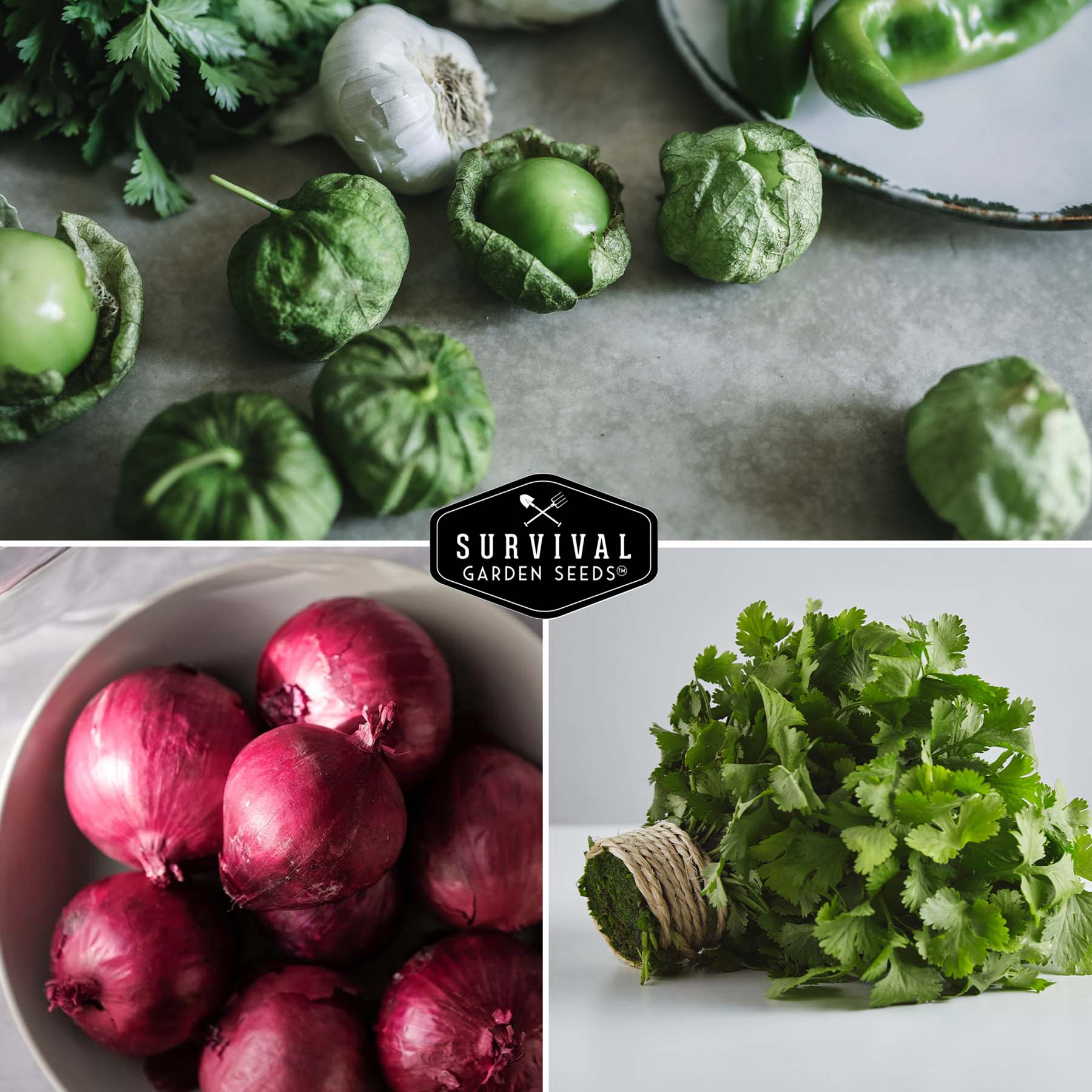 - Grow Your Own Salsa - Each of the major components of a delicious red or green salsa is included: Each of the major components of a delicious red or green salsa is included: Toma Verde tomatillos, Roma tomatoes, Red Burgundy onions, jalapeno peppers, and cilantro. Make exactly the salsa you love - chunky, smooth, hot, or mild!
