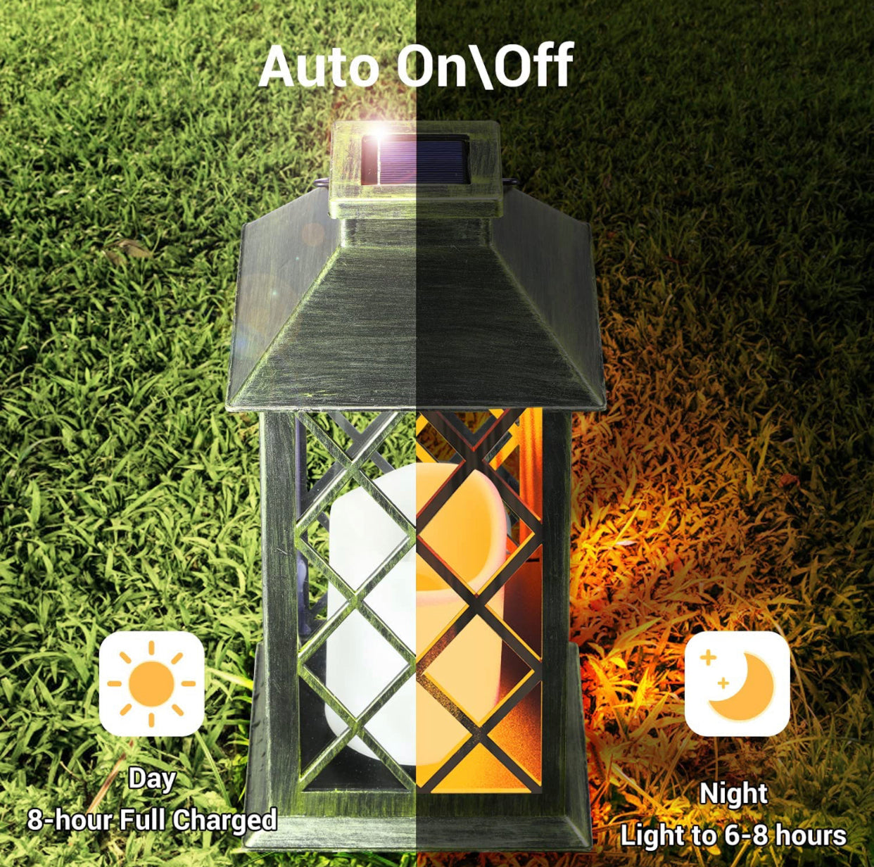 Solar Candle Lanterns Outdoor, 2 Pack Waterproof, LED Lanterns Solar Powered with Handle, Flickering Flameless Candle Lights
