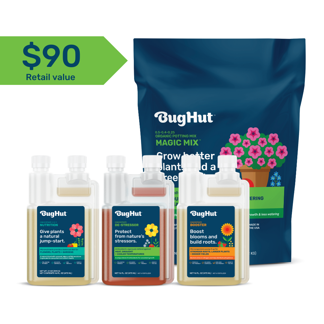 Plant in Magic Mix, use Booster and Nutrition for fast and healthy growth, and protect your plants from drought and temperature swings using De-Stressor. No matter where you’re growing, the Starter Pack is the all in one house plant starter kit to supercharge your gardening goals.