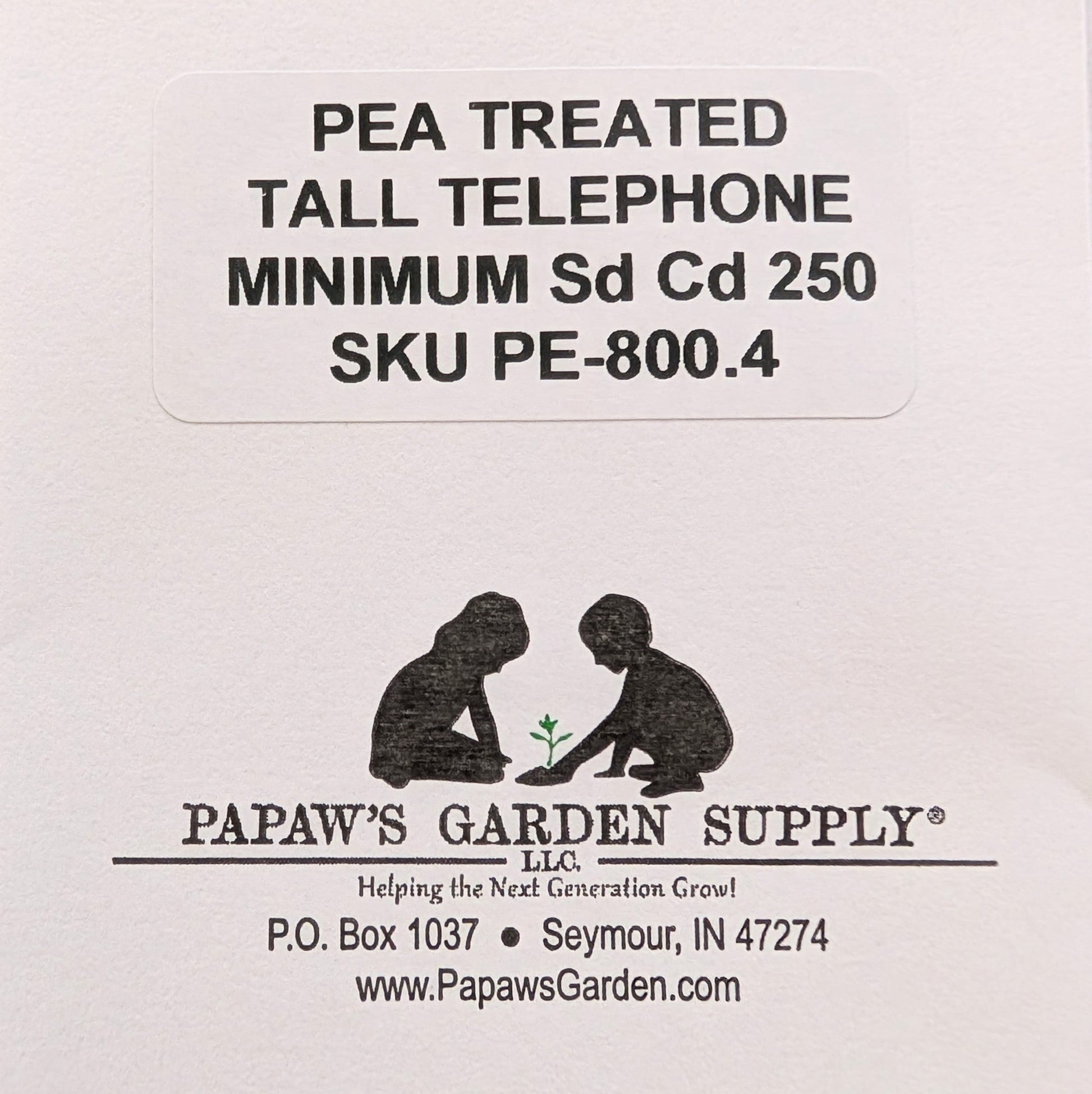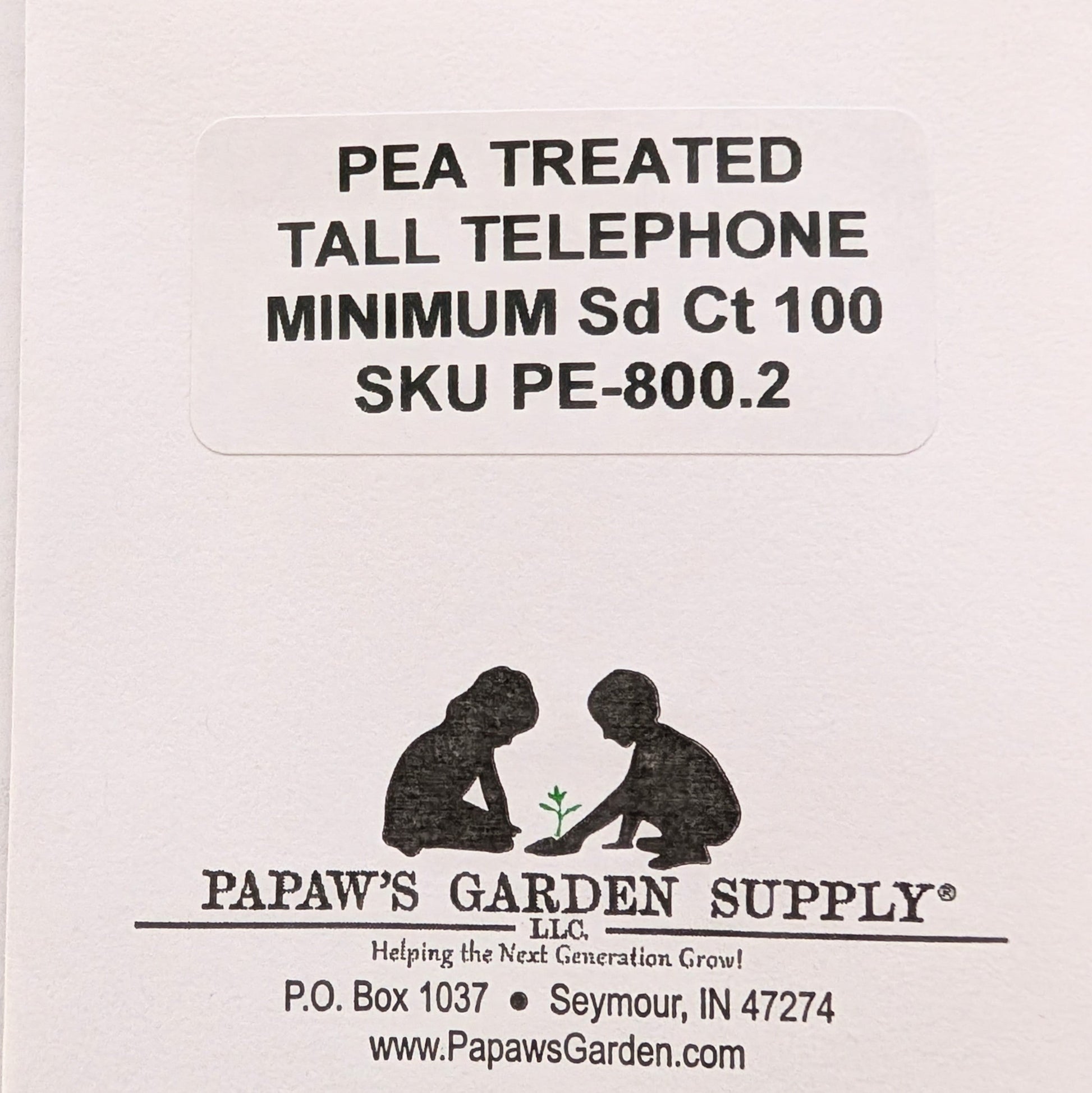 Tall Telephone Vining Pea Seed grows to 6-8 ft. tall and is great for a trellis or chain link fence.  This pea produces over a longer time than bush peas. Tall Telephone Pea is great for small spaces with high yield potential in Full sun, with adequate moisture, and started in cool weather. The peas are large in size, sweet, and tender; great for freezing. The minimum Seed Count is either:  100 Seed Count or 250 Seed Count.